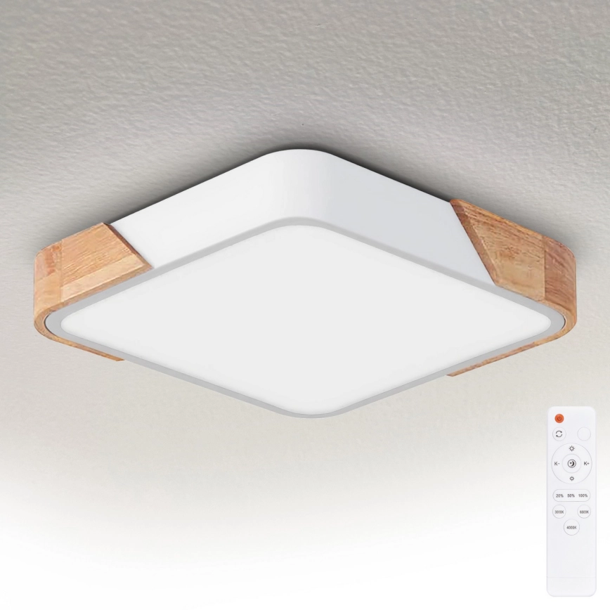 • Brilagi - Dimbare LED-plafondlamp PILANA LED/48W/230V 3000-6500K eiken/wit 42x42 cm + afstandsbediening