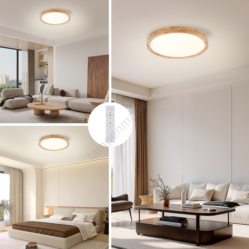 • Brilagi - LED dimbare plafondlamp WOODROUND LED/30W/230V 3000-6000K Ø 40 cm hout CRI 90 + afstandsbediening