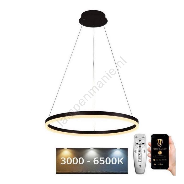 • Brilagi - Dimbare LED-hanglamp aan kabel CIRCLE LED/70W/230V 3000-6500K Ø 60 cm zwart + afstandsbediening
