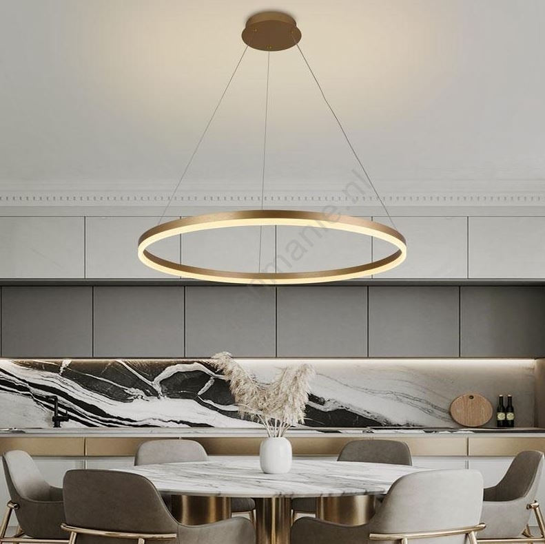 • Brilagi - Dimbare LED-hanglamp aan kabel CIRCLE LED/55W/230V 3000–6500K Ø 80 cm goudkleurig, inclusief afstandsbediening