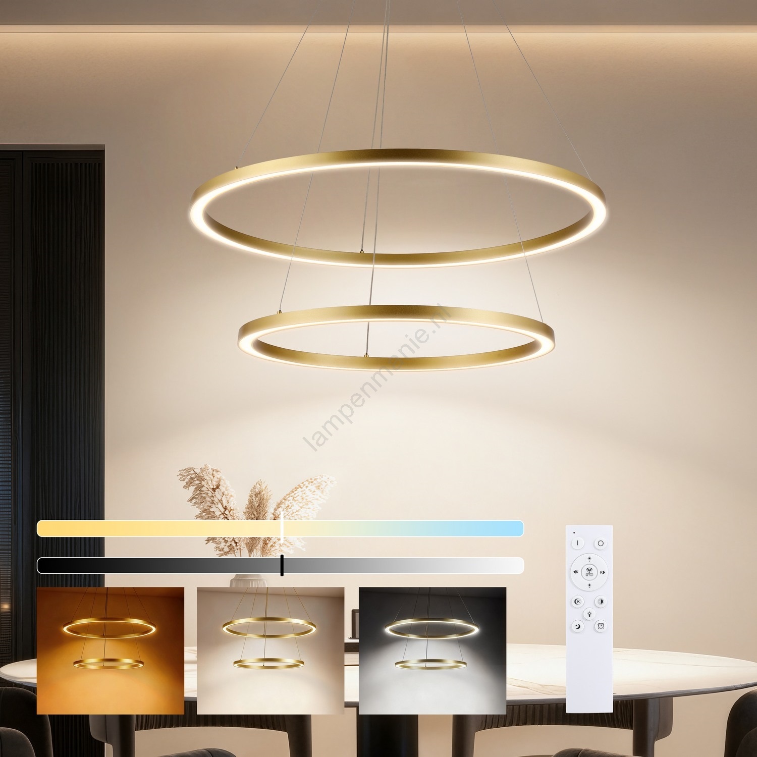 • Brilagi - Dimbare LED-hanglamp met kabelophanging PORTOFINO LED/60W/230V 3000-6000K Ø 80 cm goudkleurig + afstandsbediening