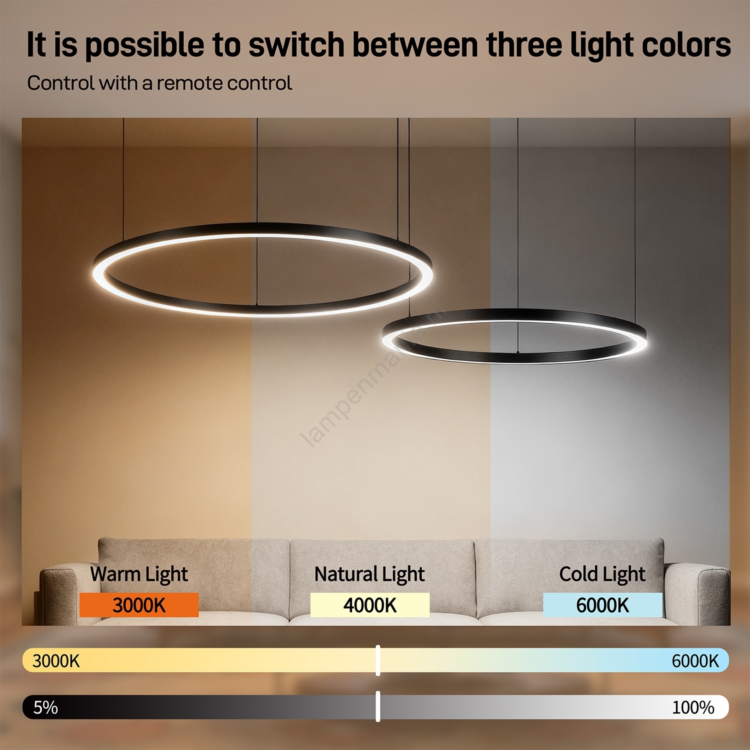 • Brilagi - Dimbare LED-pendellamp met kabel PORTOFINO LED/98W/230V 3000-6000K wit + afstandsbediening