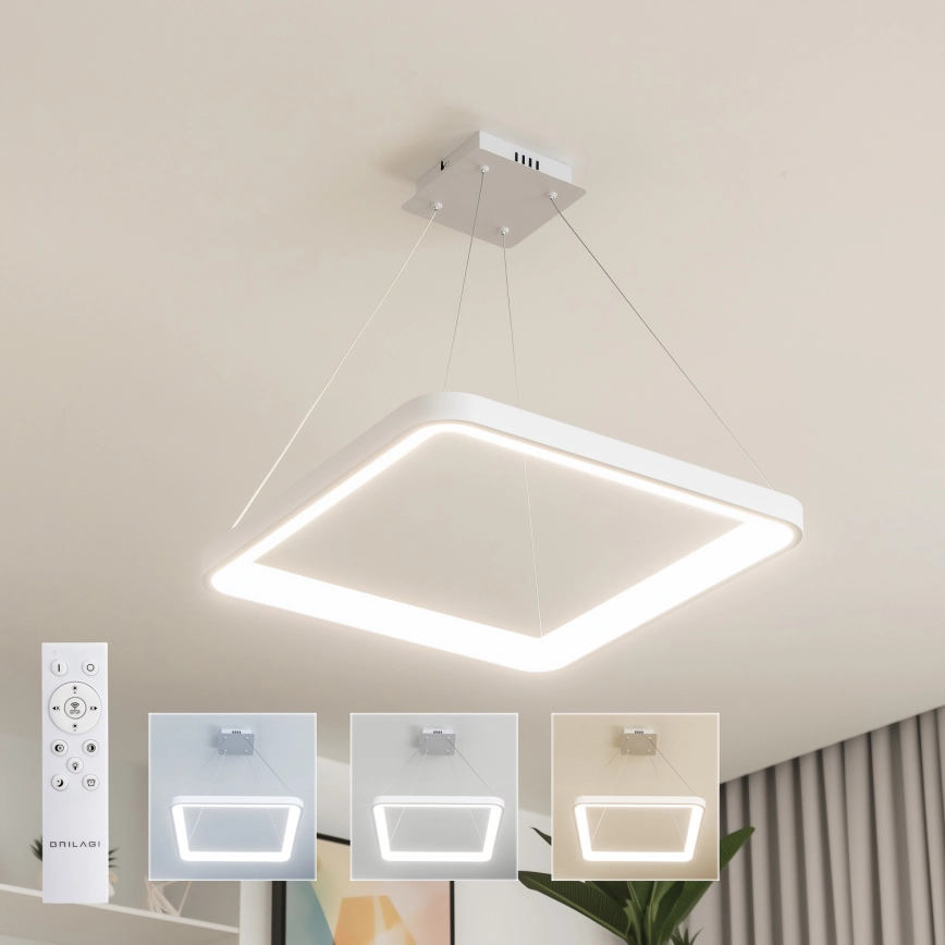 • Brilagi - dimbare LED-hanglamp aan kabel FALCON SLIM LED/78W/230V 3000-6500K 50x50 cm wit + afstandsbediening