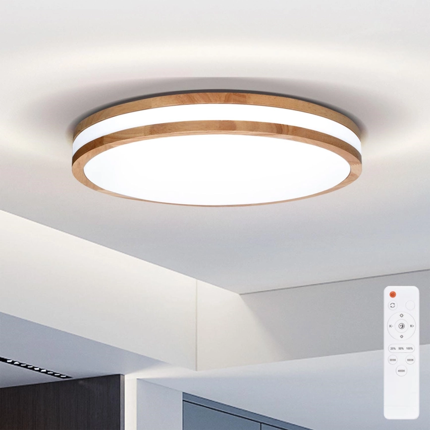 Brilagi - LED dimbare plafondlamp MOLINA LED/48W/230V 3000-6500K eiken pr. 38 cm + afstandsbediening