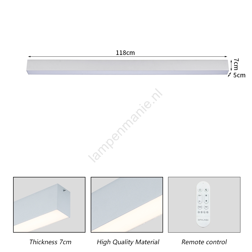 • Dimbaar en via uw telefoon of afstandsbediening in lichtkleur aan te passen.