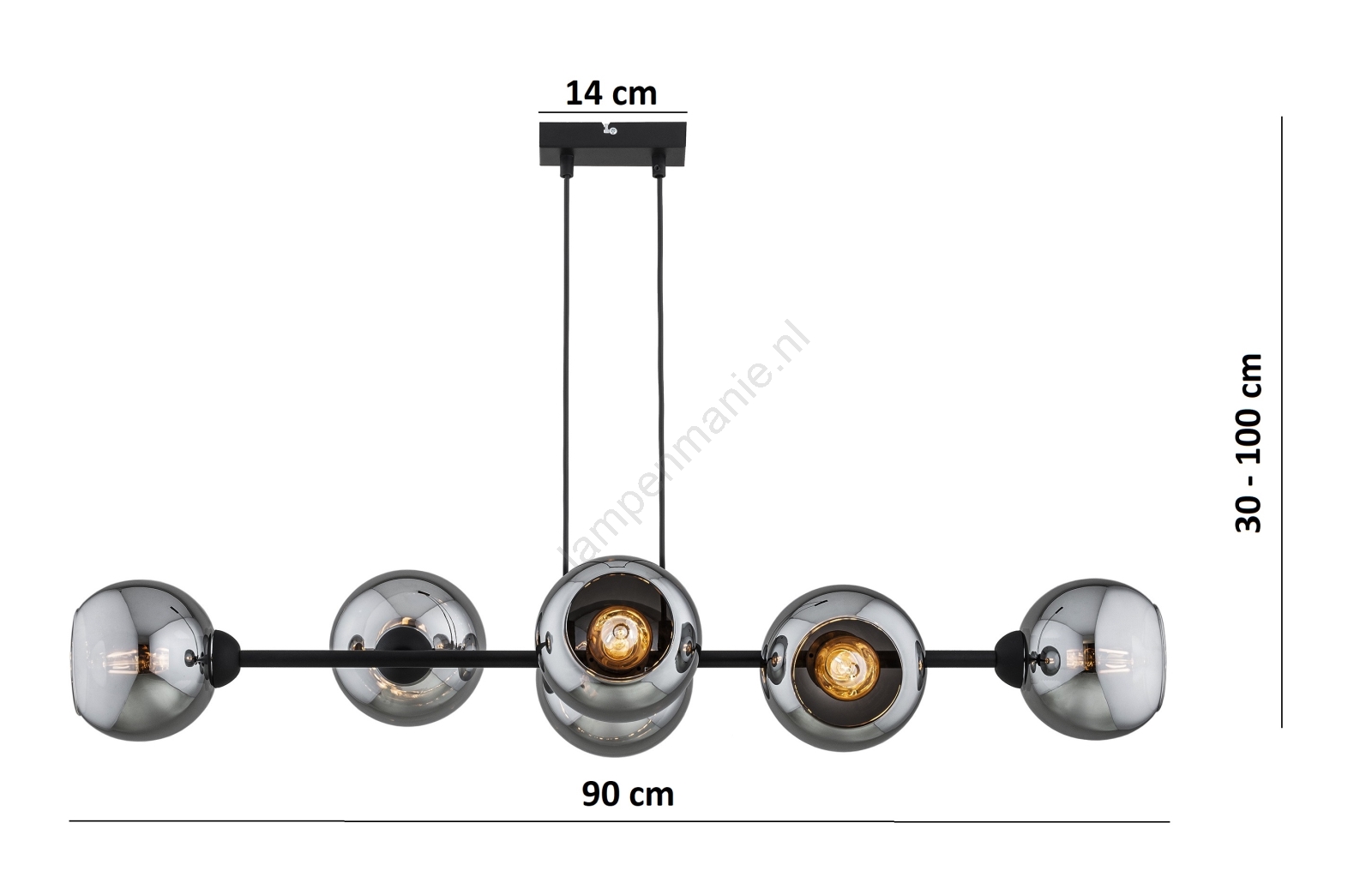 • Brilagi - Hanglamp aan kabel 6xE27/60W/230V zwart/rookgrijs