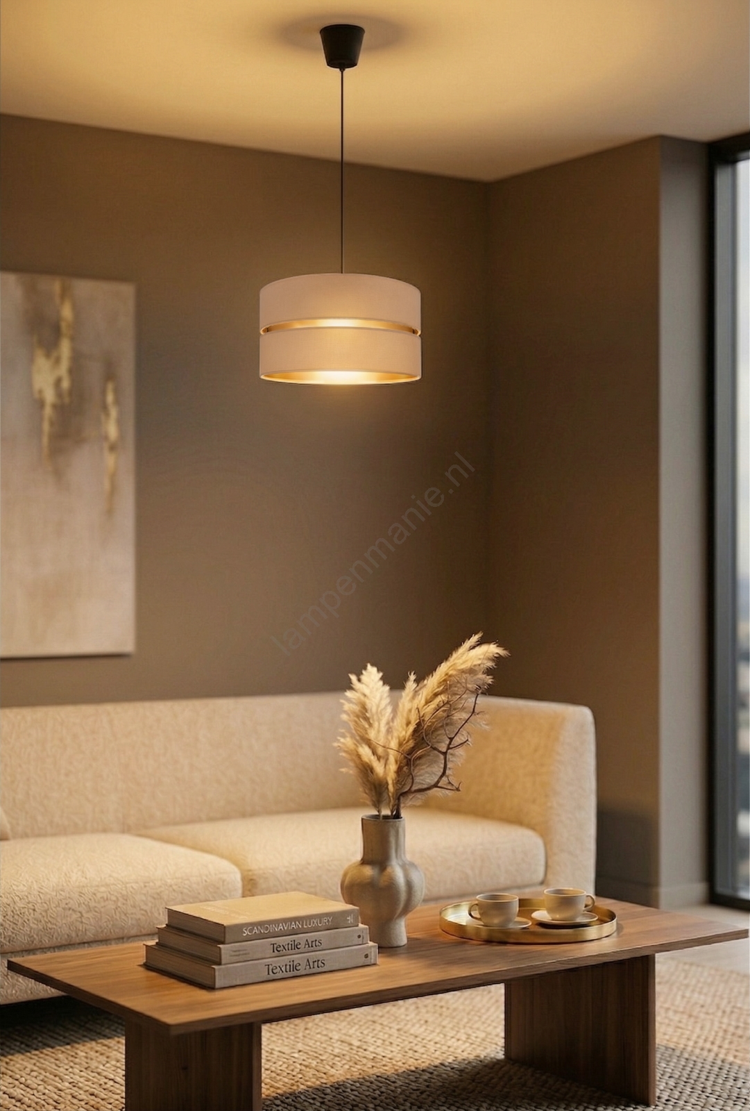 Brilagi - Hanglamp aan kabel DUO-DUO 1xE27/60W/230V Ø 40 cm beige/goud kenmerkt een mooi en functioneel ontwerp.  Voor het licht is een lamp met E27 fitting geschikt. Hier kunt u andere lampen tegen voordelige prijzen kopen. U heeft een interessante aanwinst voor uw woning.