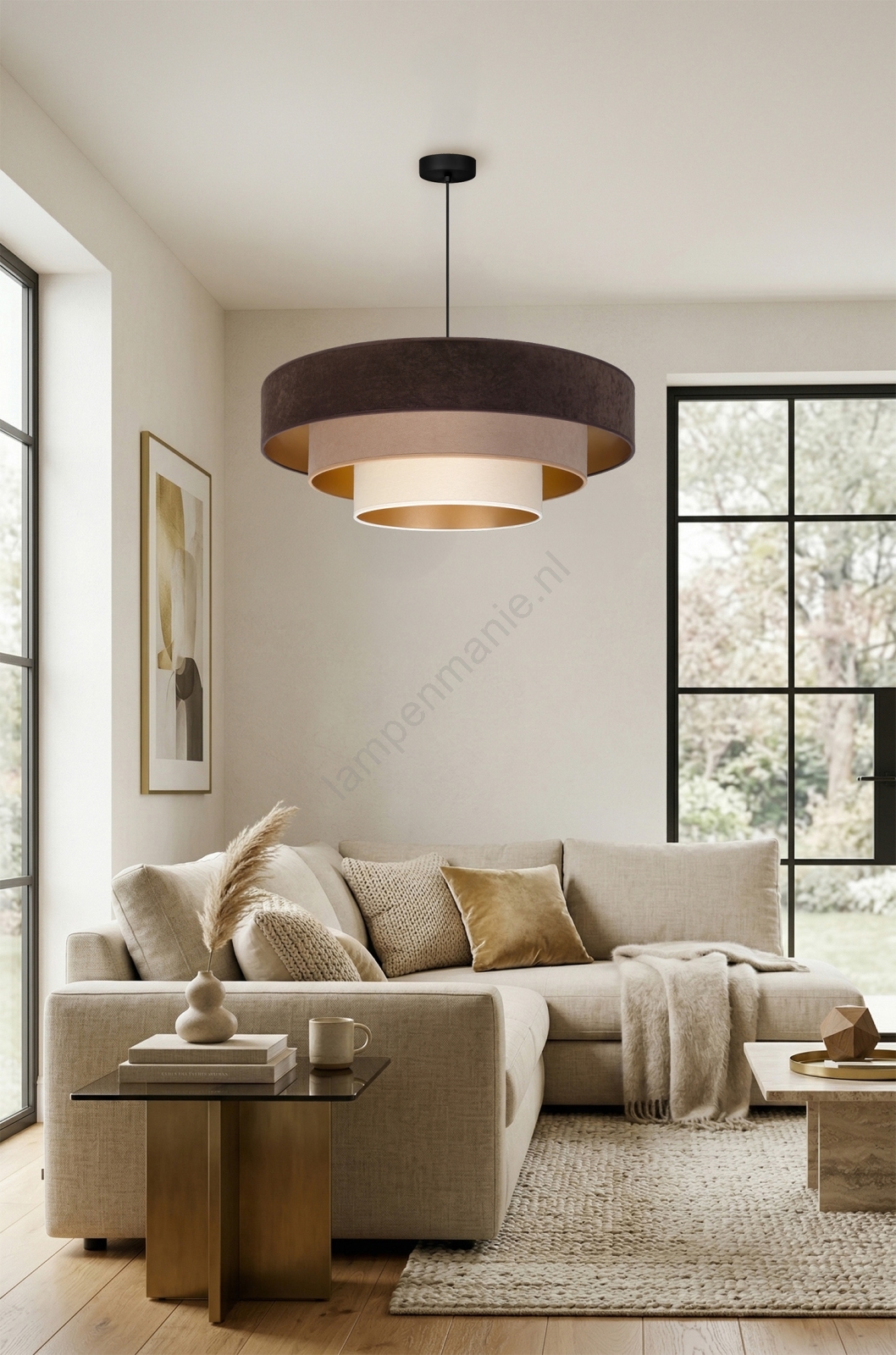 Brilagi - Hanglamp aan kabel LUNETA 3xE27/60W/230V Ø 80 cm bruin/beige/crème kenmerkt een mooi en functioneel ontwerp.  Voor het licht is een lamp met E27 fitting geschikt. Hier kunt u andere lampen tegen voordelige prijzen kopen. U heeft een interessante aanwinst voor uw woning.