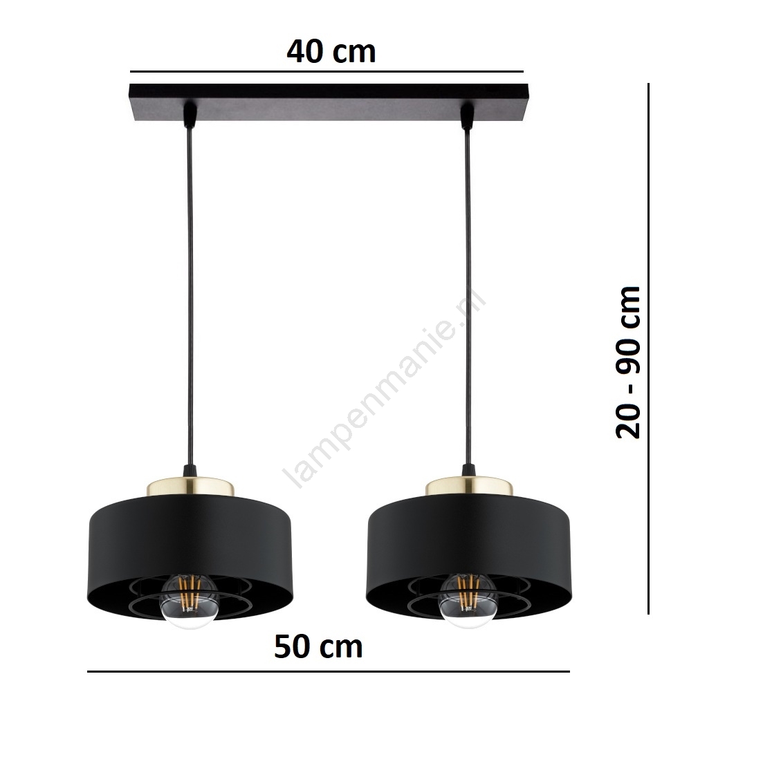 • Brilagi - Hanglamp met kabel 2xE27/60W/230V zwart/goud