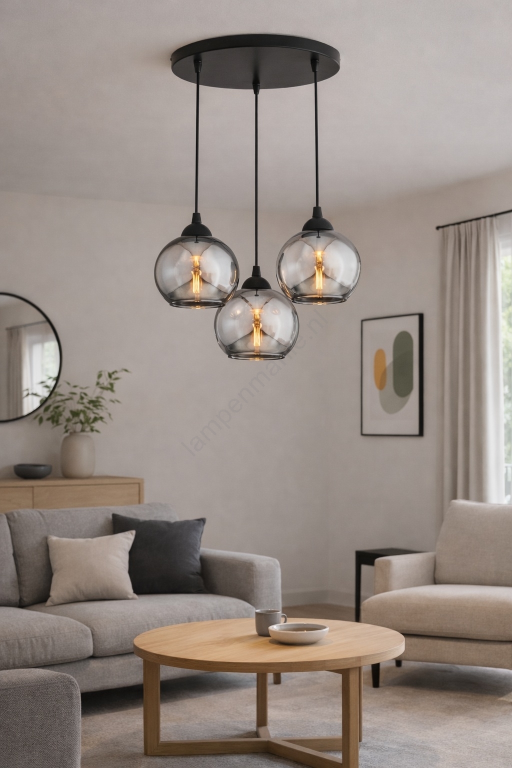 Brilagi - Hanglamp met kabel 3xE27/60W/230V zwart/rookgrijs