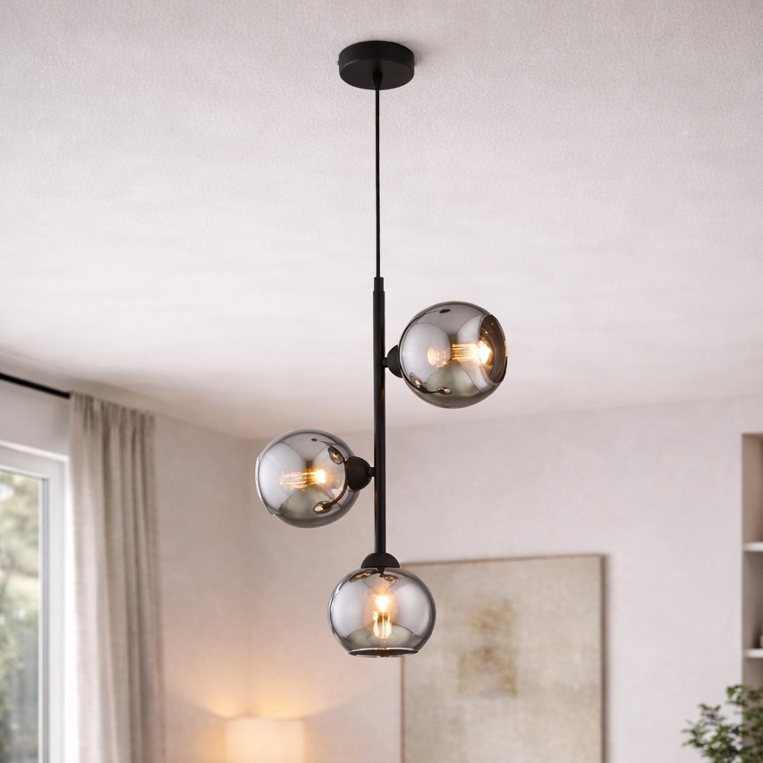 Brilagi - Hanglamp met snoer 3xE27/60W/230V zwart/rookgrijs