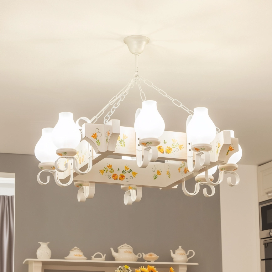 Brilagi - Kroonluchter aan ketting QUEEN 8xE14/40W/230V beuk/crème