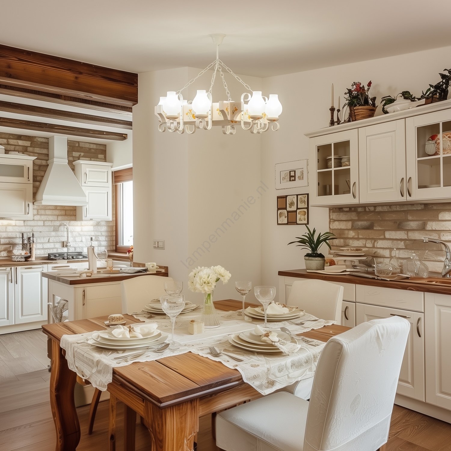 Brilagi - Kroonluchter aan ketting QUEEN 8xE14/40W/230V beuk/crème kenmerkt een mooi en functioneel ontwerp.  Voor het licht is een lamp met E14 fitting geschikt. Hier kunt u andere lampen tegen voordelige prijzen kopen. U heeft een interessante aanwinst voor uw woning.