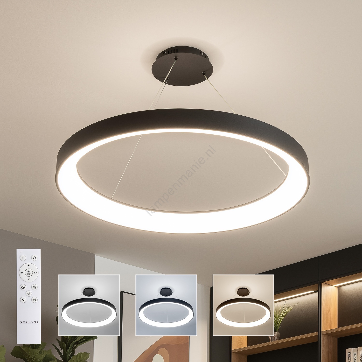 Brilagi - LED-dimbare hanglamp aan kabel FALCON II LED/108W/230V 3000-6500K Ø 80 cm zwart + afstandsbediening