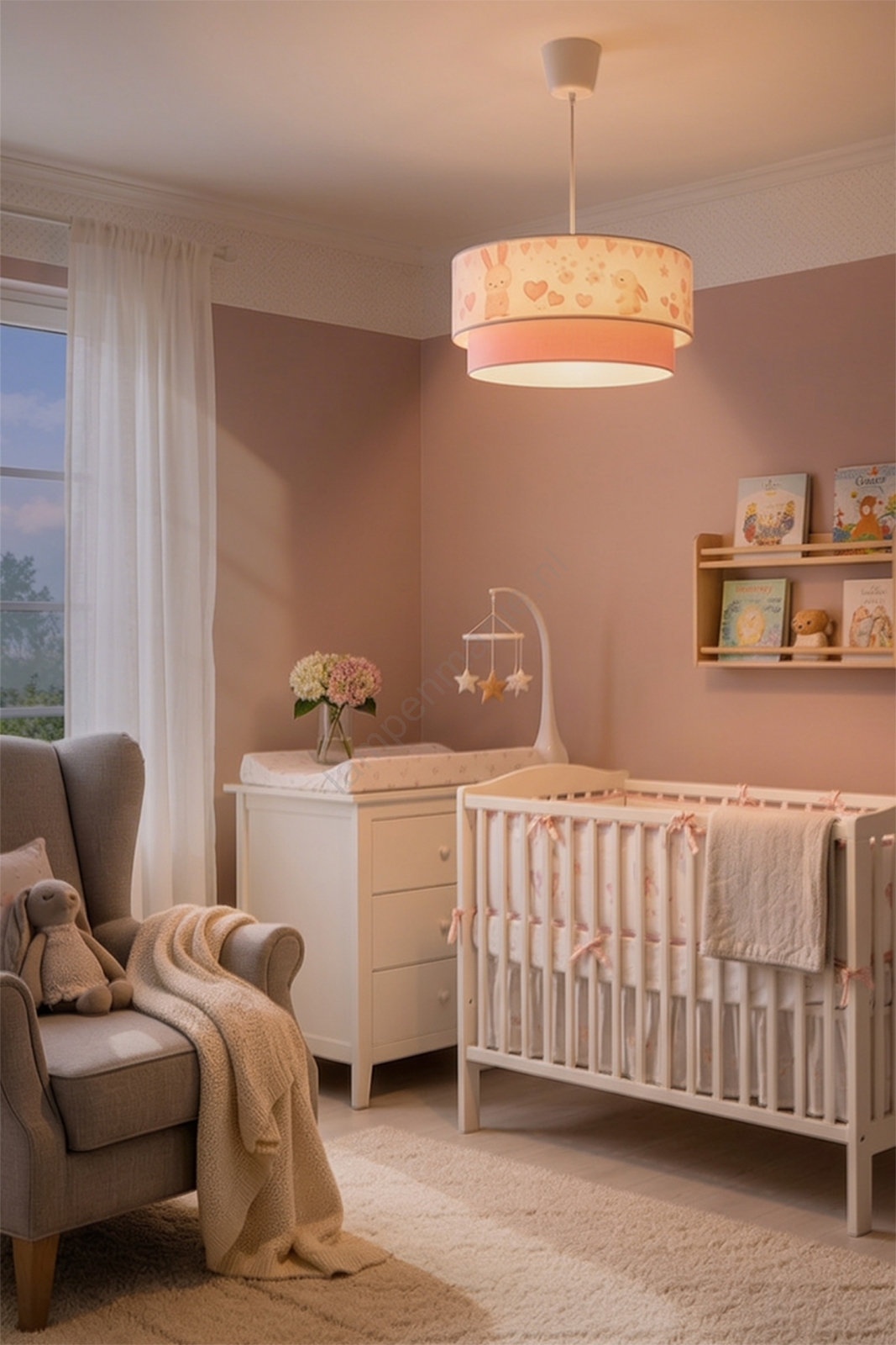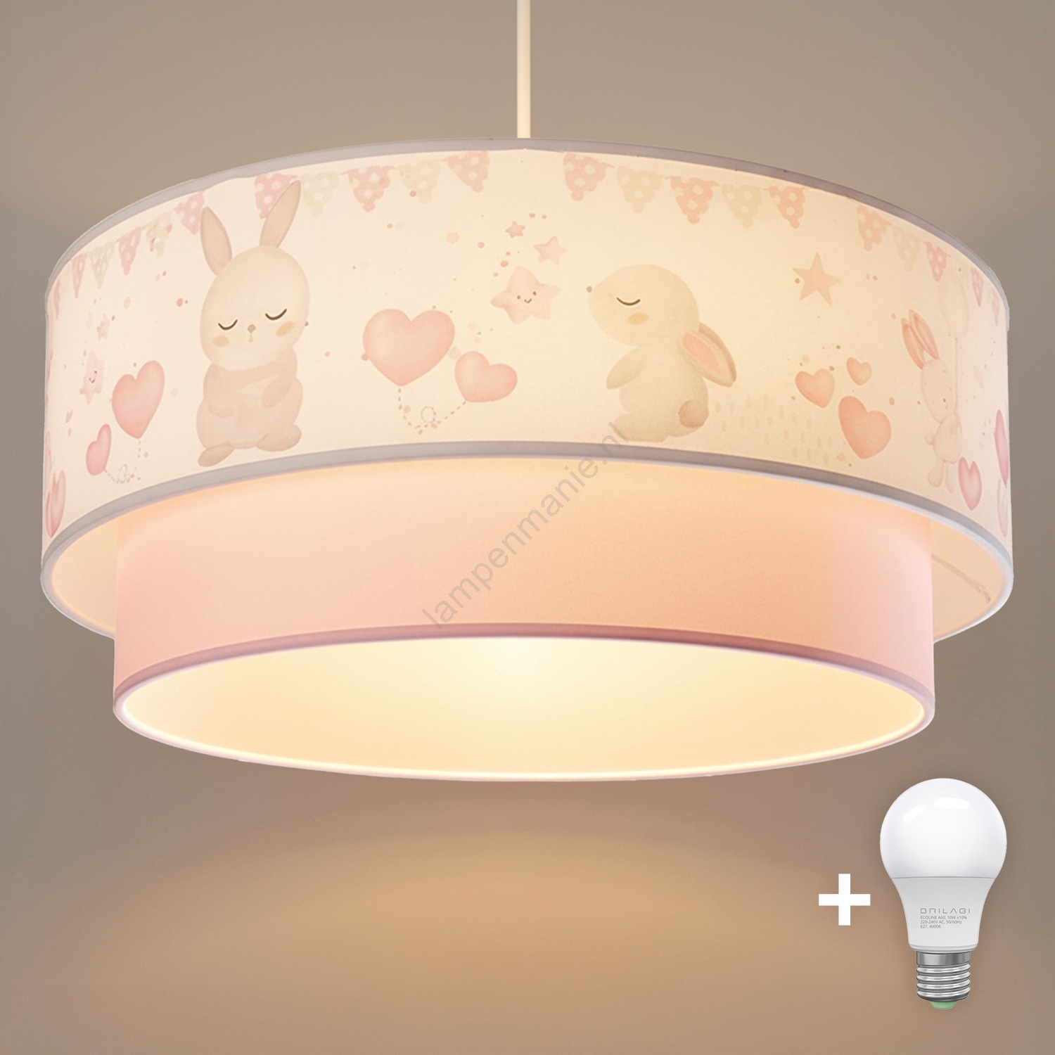 • Brilagi - LED kinderhanglamp aan kabel BOBO 1xE27/10W/230V Ø 40 cm crème/roze/konijntjes