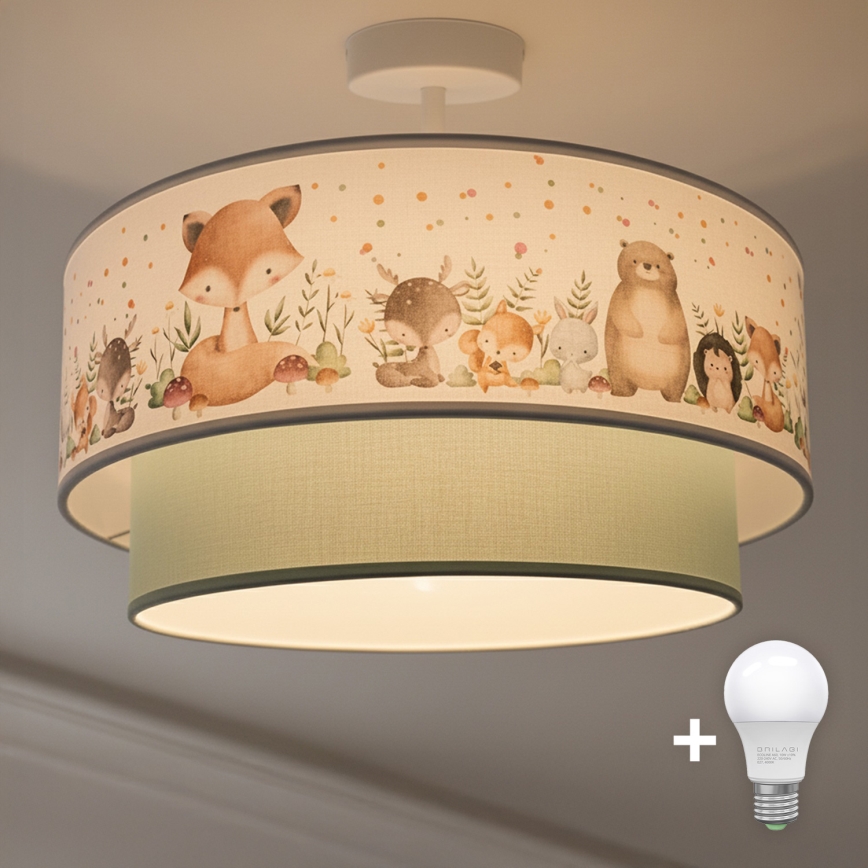 Brilagi - LED kinderplafonnière (opbouw) BOBO 1xE27/10W/230V Ø 40 cm wit/groen/dierenmotief
