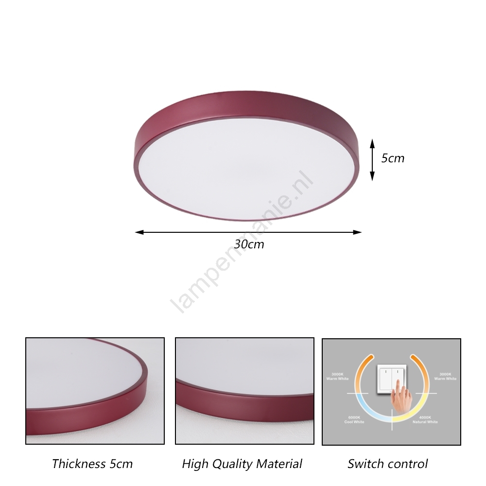 • Brilagi - LED-plafondlamp POOL, 36 W, 230 V, 3000/4000/6000 K, Ø 30 cm, bordeaux