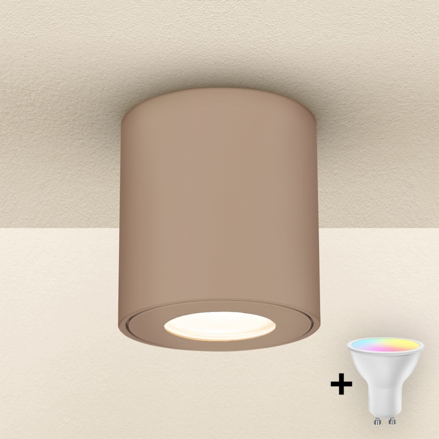 Brilagi - LED RGBW dimbare badkamerlamp MIA 1xGU10/4,8W/230V 3000K 84x80 mm beige IP54 + afstandsbediening