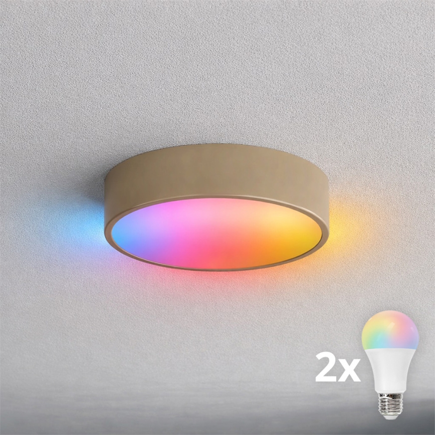Brilagi - LED RGBW dimbare badkamerplafondlamp CLARE 2xE27/9W/230V 2700-6500K Ø 30 cm IP54 Wi-Fi beige