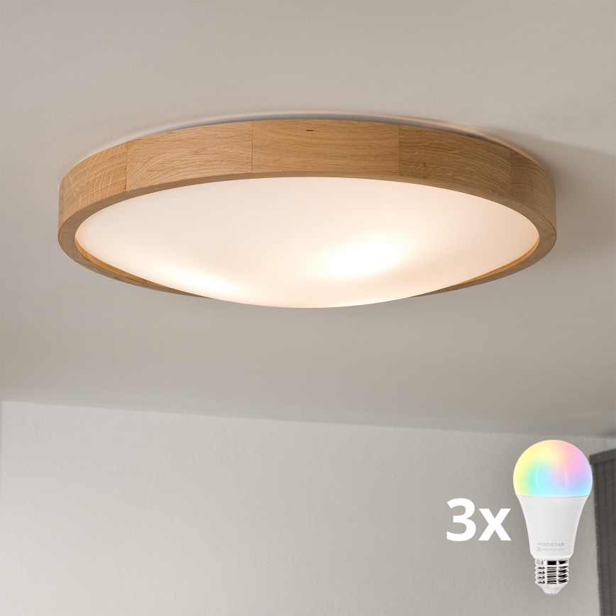 Brilagi - LED RGBW dimbare plafondlamp CARVALHO SLIM 3xE27/15W/230V 2700-6500K Wi-Fi eiken Ø 47 cm