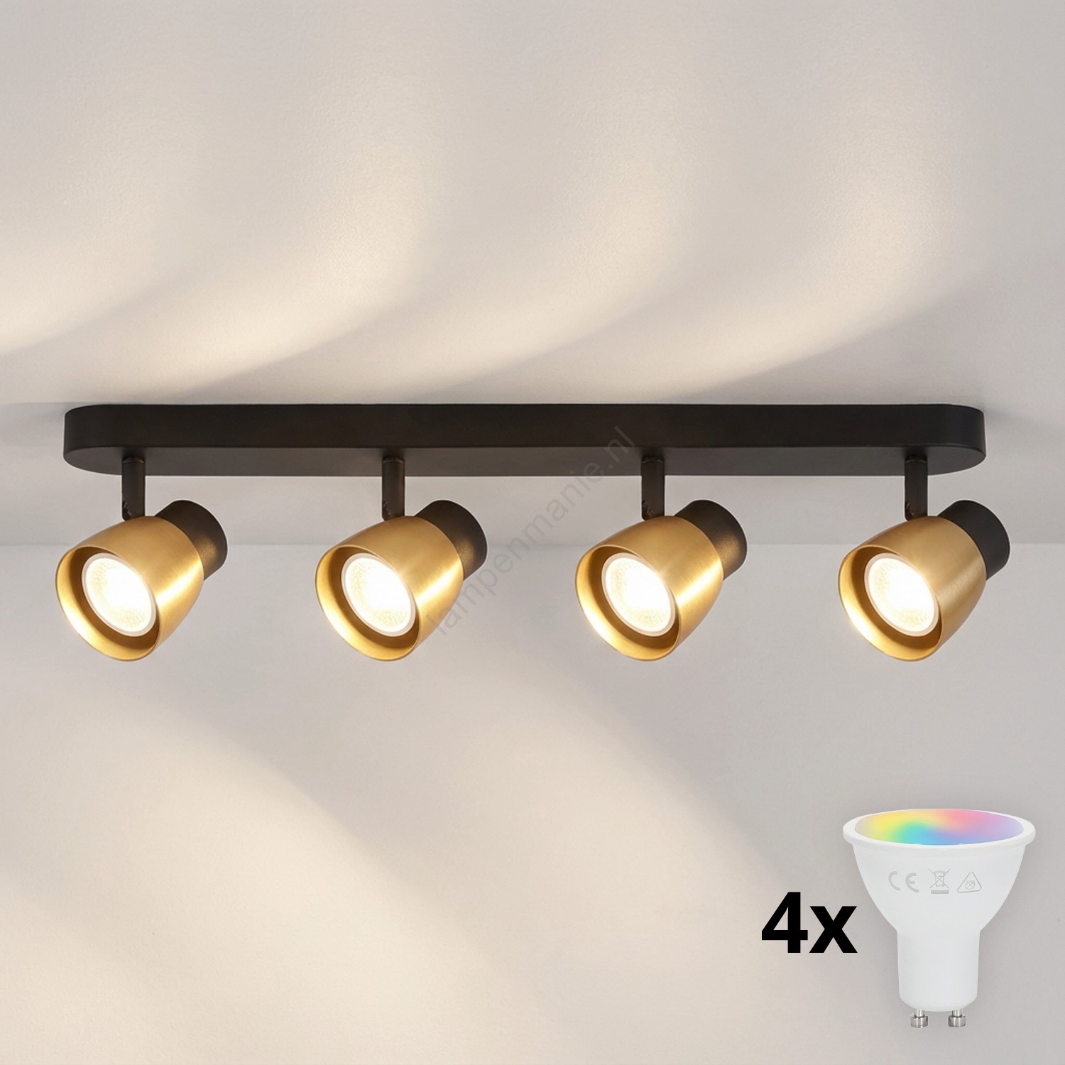 Brilagi - LED RGBW dimbare spotarmatuur NUGGET 4xGU10/6W/230V 3000K zwart/goud + afstandsbediening