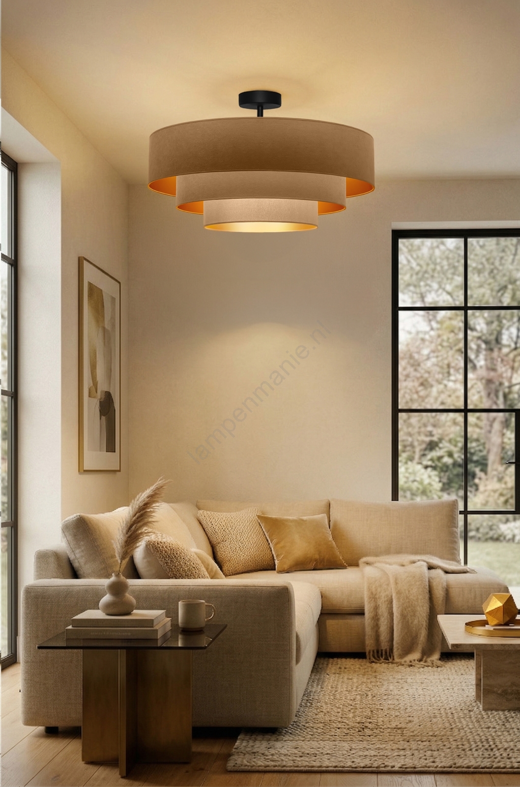 Brilagi - Opbouwkroonluchter LUNETA 3xE27/60W/230V diameter 80 cm beige/goud kenmerkt een mooi en functioneel ontwerp.  Voor het licht is een lamp met E27 fitting geschikt. Hier kunt u andere lampen tegen voordelige prijzen kopen. U heeft een interessante aanwinst voor uw woning.