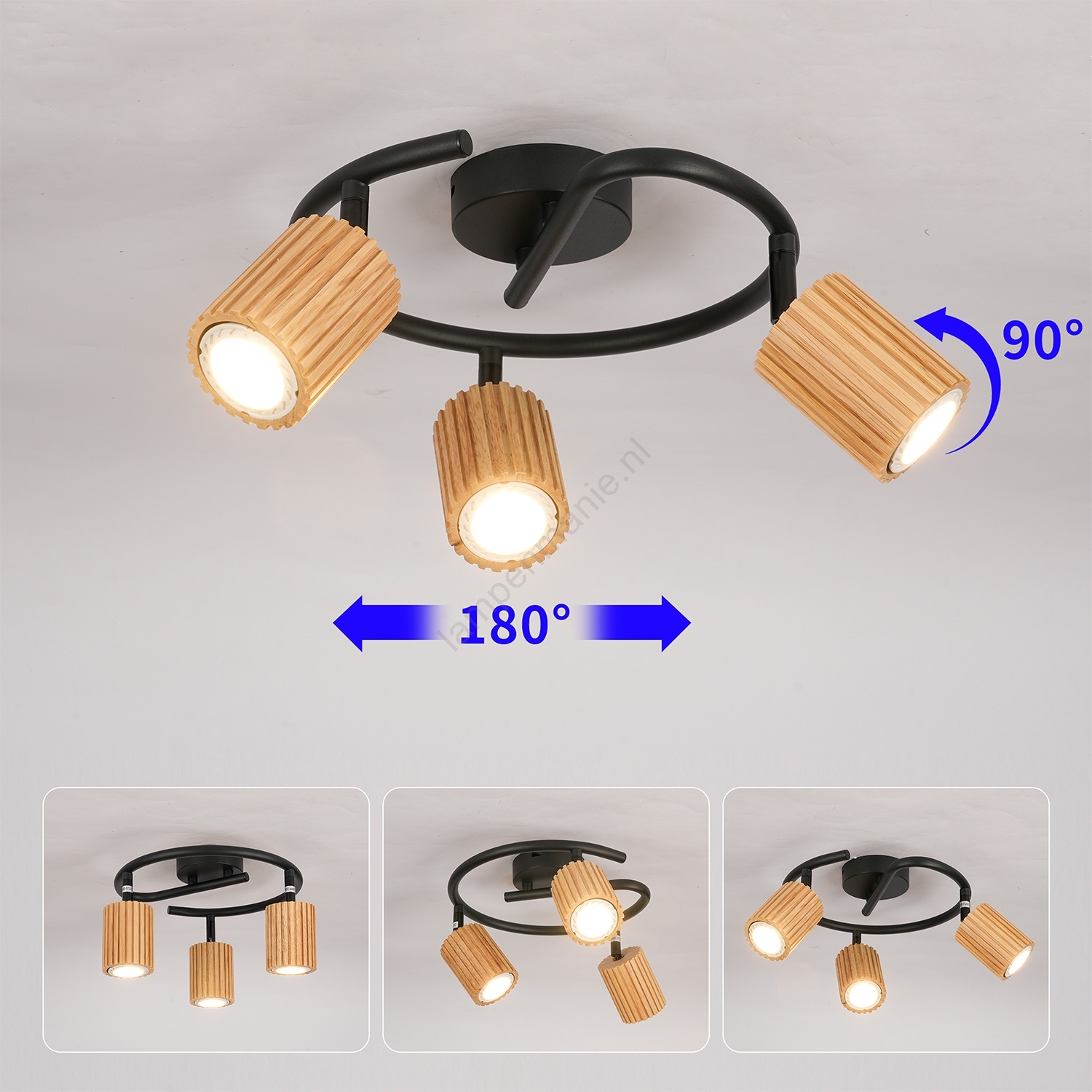 Brilagi - Plafondspot MODERN WOOD 3xGU10/8W/230V rubberhout/zwart kenmerkt een mooi en functioneel ontwerp.  Voor het licht is een lamp met GU10 fitting geschikt. Hier kunt u andere lampen tegen voordelige prijzen kopen. U heeft een interessante aanwinst voor uw woning.