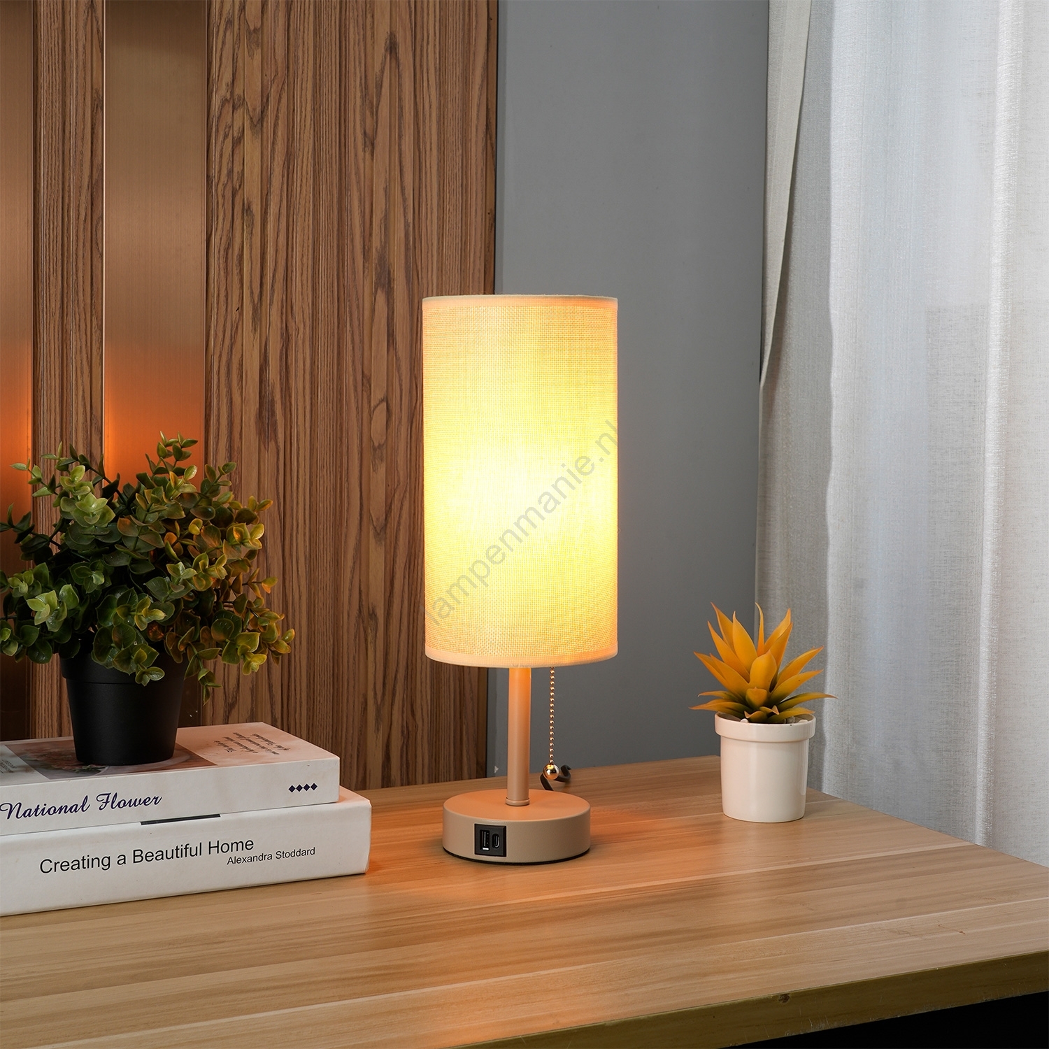 Brilagi - Tafellamp met USB-poort TABLON 1xE27/25W/230V beige