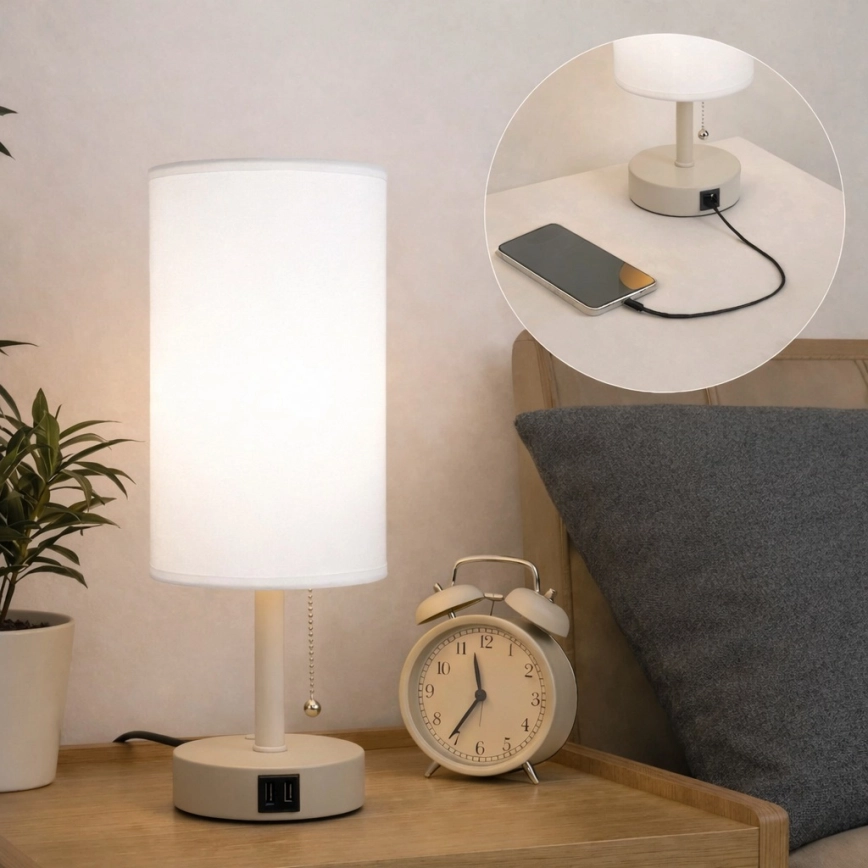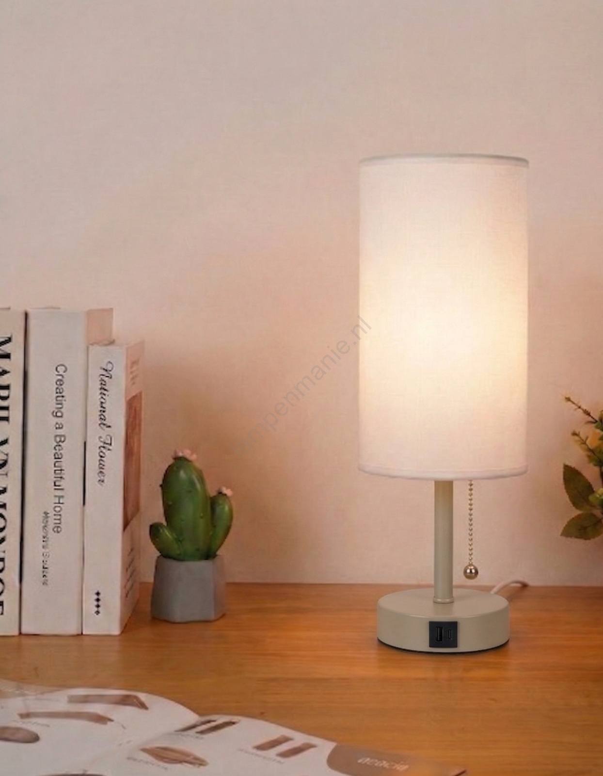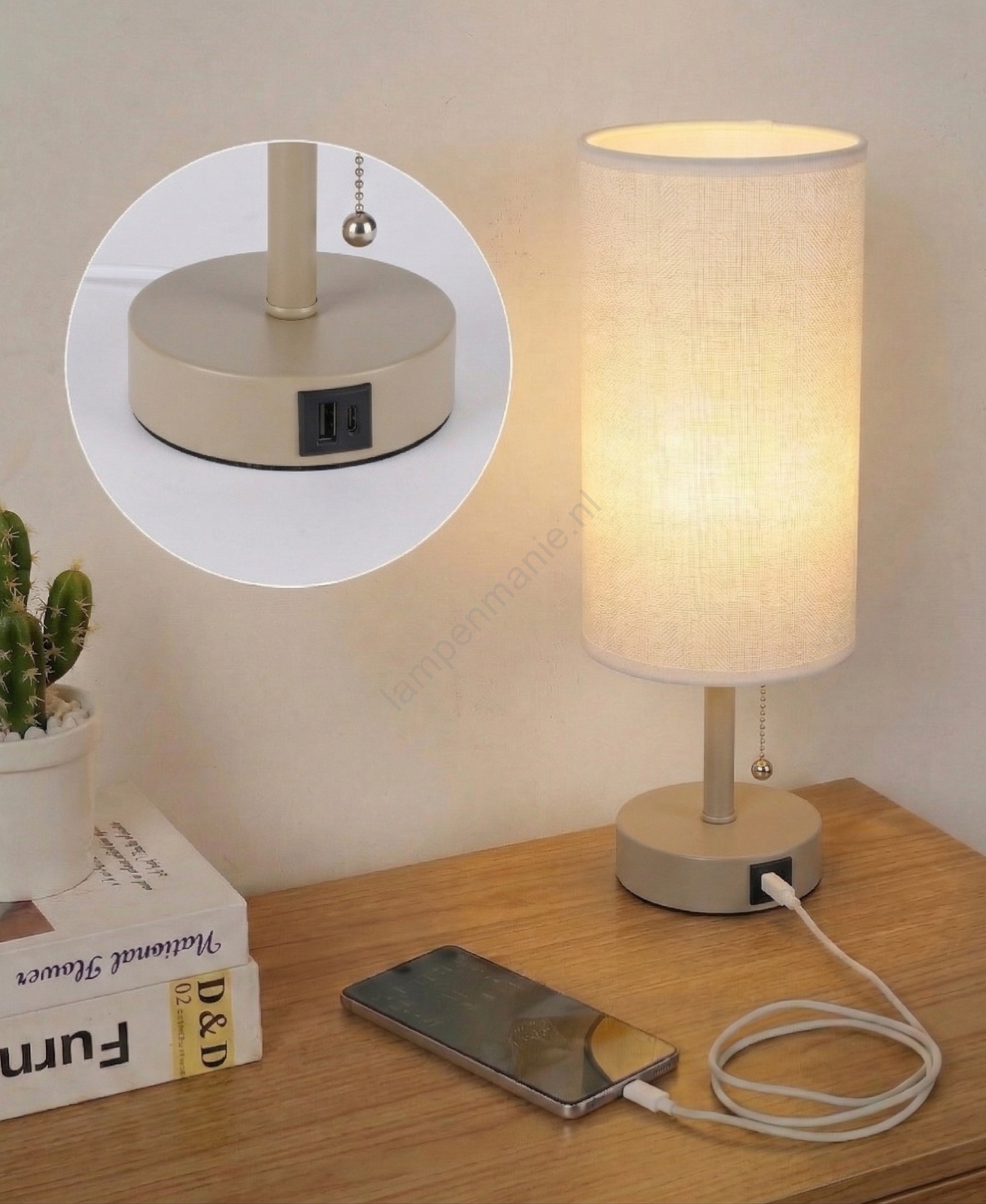 • Brilagi - Tafellamp met USB-poort TABLON 1xE27/25W/230V beige