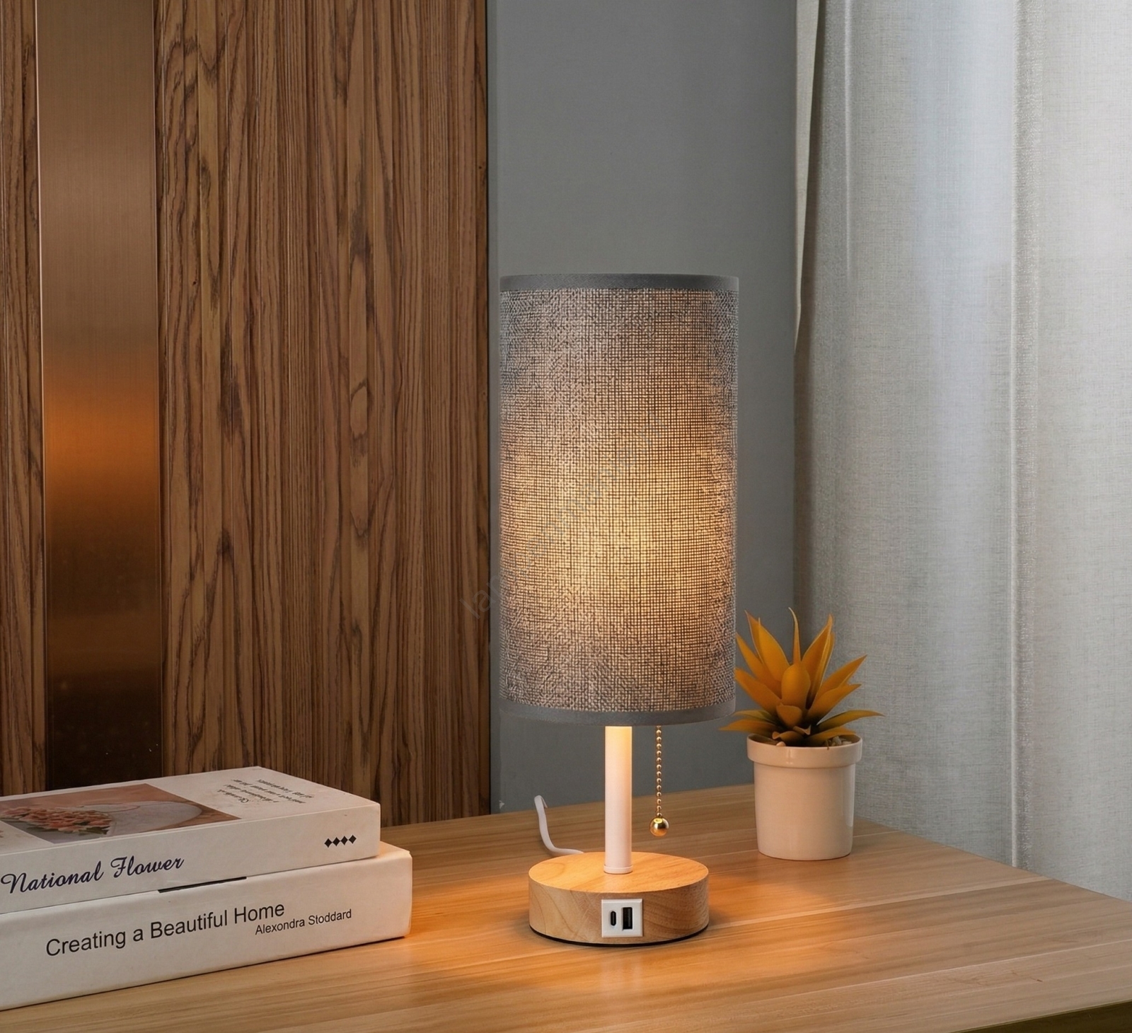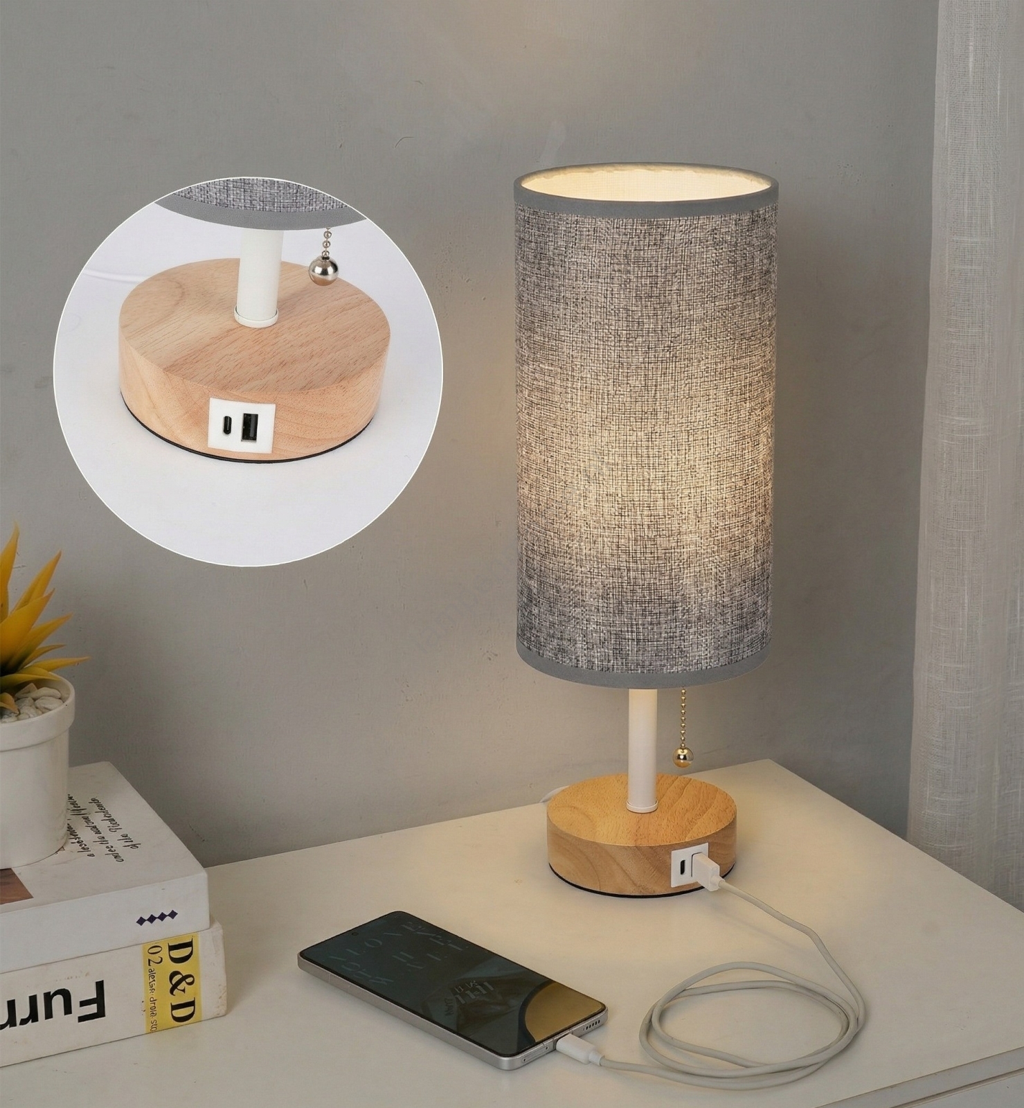 Brilagi - Tafellamp met USB-poort TABLON 1xE27/25W/230V eiken/wit/grijs kenmerkt een mooi en functioneel ontwerp.  Voor het licht is een lamp met E27 fitting geschikt. Hier kunt u andere lampen tegen voordelige prijzen kopen. U heeft een interessante aanwinst voor uw woning.