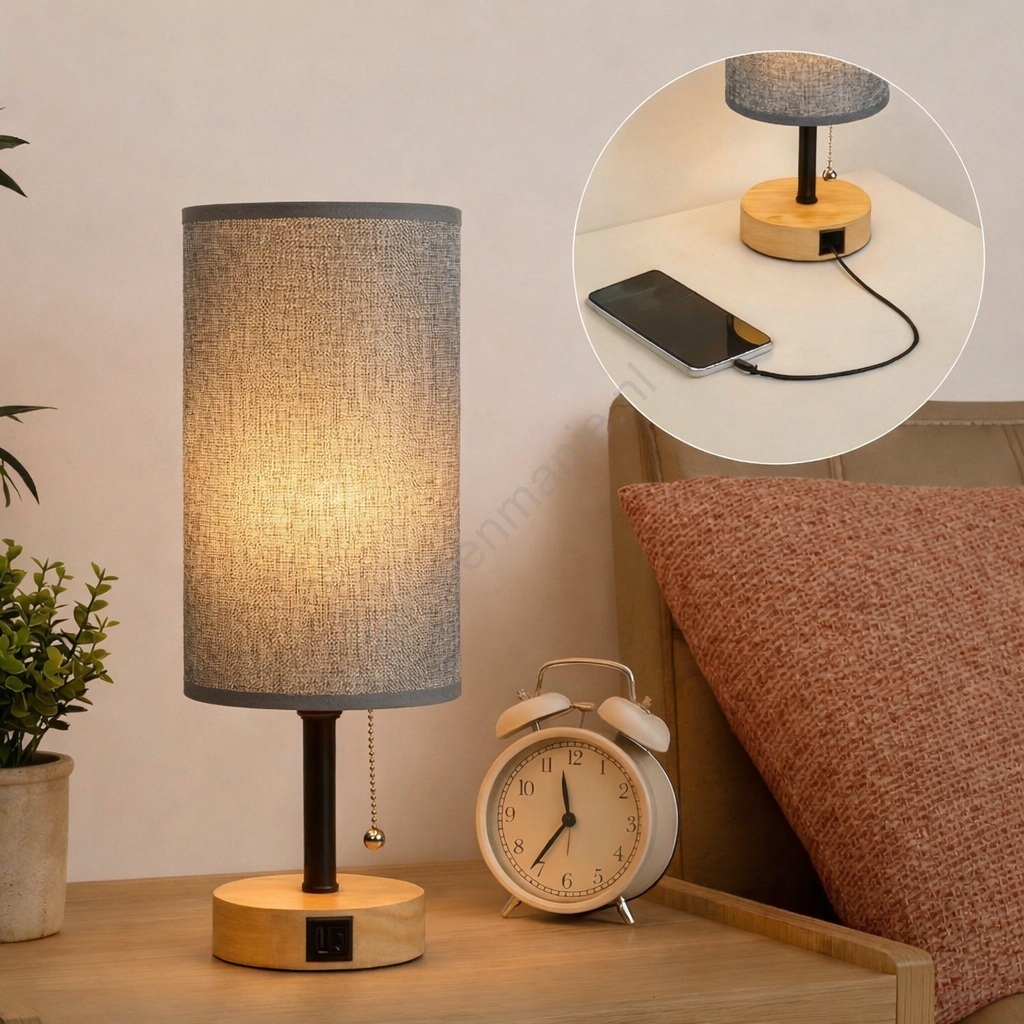 Brilagi - Tafellamp met USB-poort TABLON 1xE27/25W/230V eiken/zwart/grijs kenmerkt een mooi en functioneel ontwerp.  Voor het licht is een lamp met E27 fitting geschikt. Hier kunt u andere lampen tegen voordelige prijzen kopen. U heeft een interessante aanwinst voor uw woning.