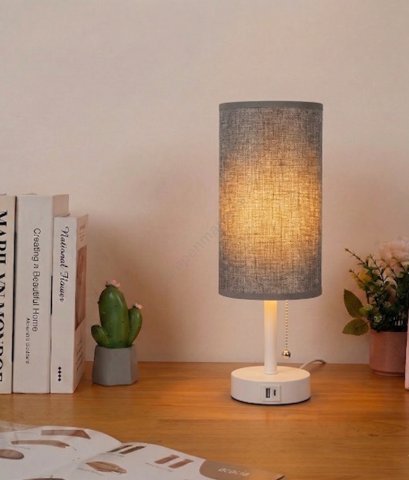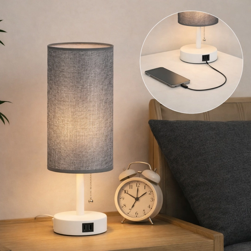 Brilagi - Tafellamp met USB-poort TABLON 1xE27/25W/230V wit/grijs
