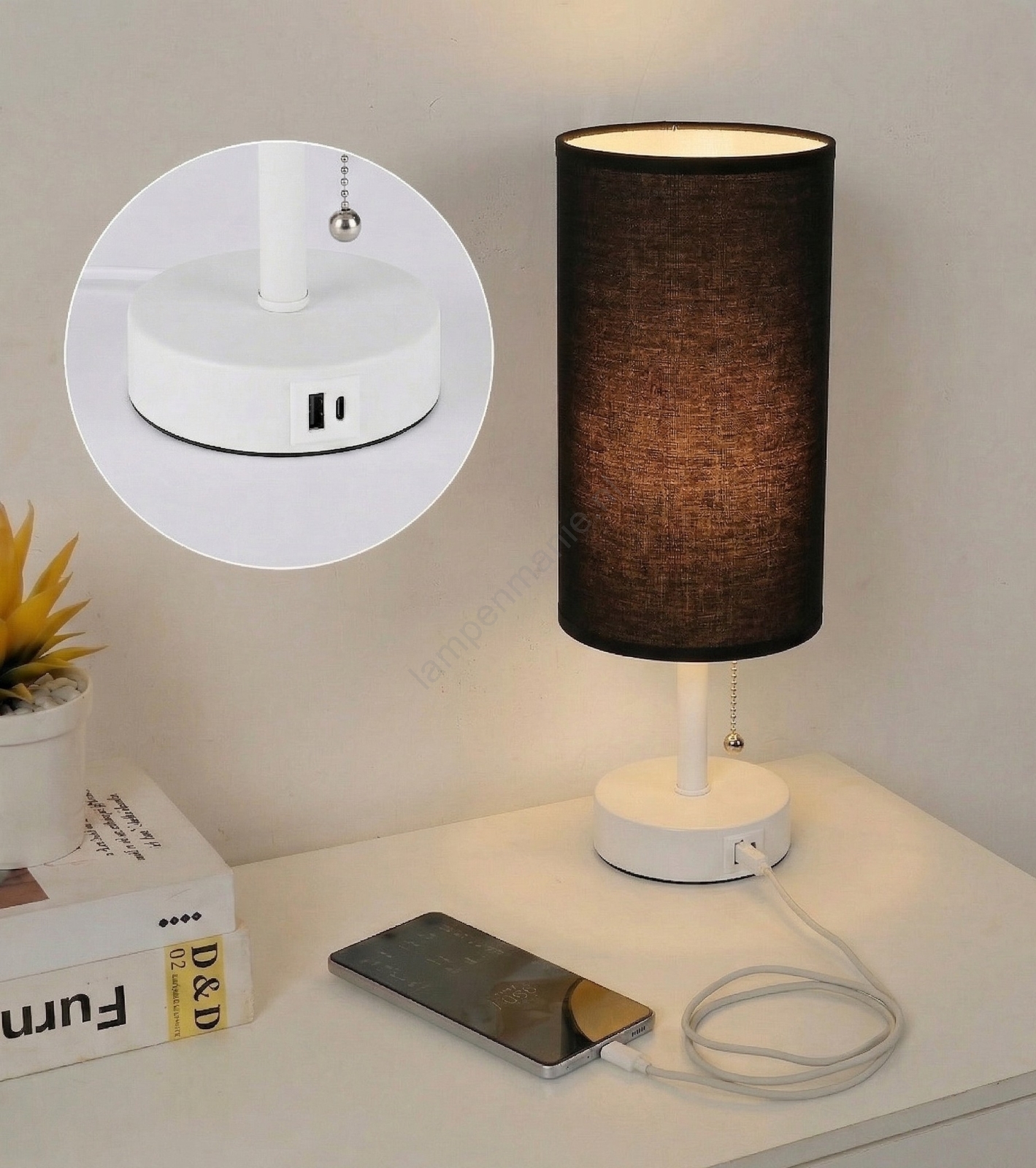 Brilagi - Tafellamp met USB-poort TABLON 1xE27/25W/230V wit/zwart