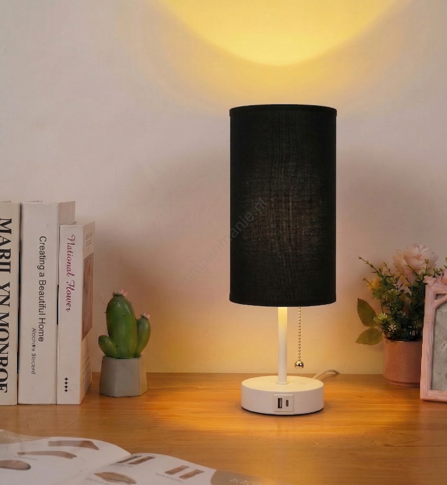 • Brilagi - Tafellamp met USB-poort TABLON 1xE27/25W/230V zwart/crème