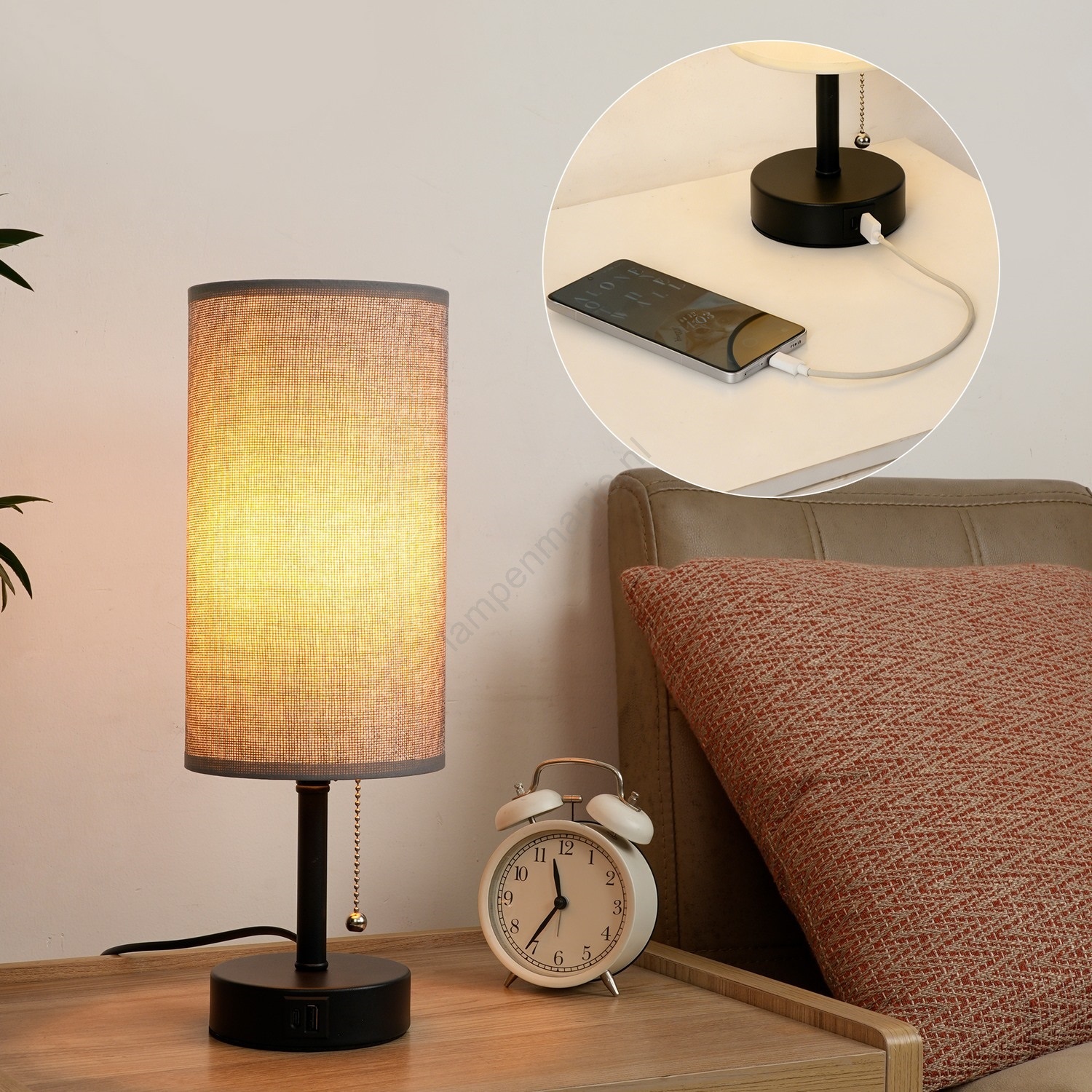Brilagi - Tafellamp met USB-poort TABLON 1xE27/25W/230V zwart/grijs kenmerkt een mooi en functioneel ontwerp.  Voor het licht is een lamp met E27 fitting geschikt. Hier kunt u andere lampen tegen voordelige prijzen kopen. U heeft een interessante aanwinst voor uw woning.