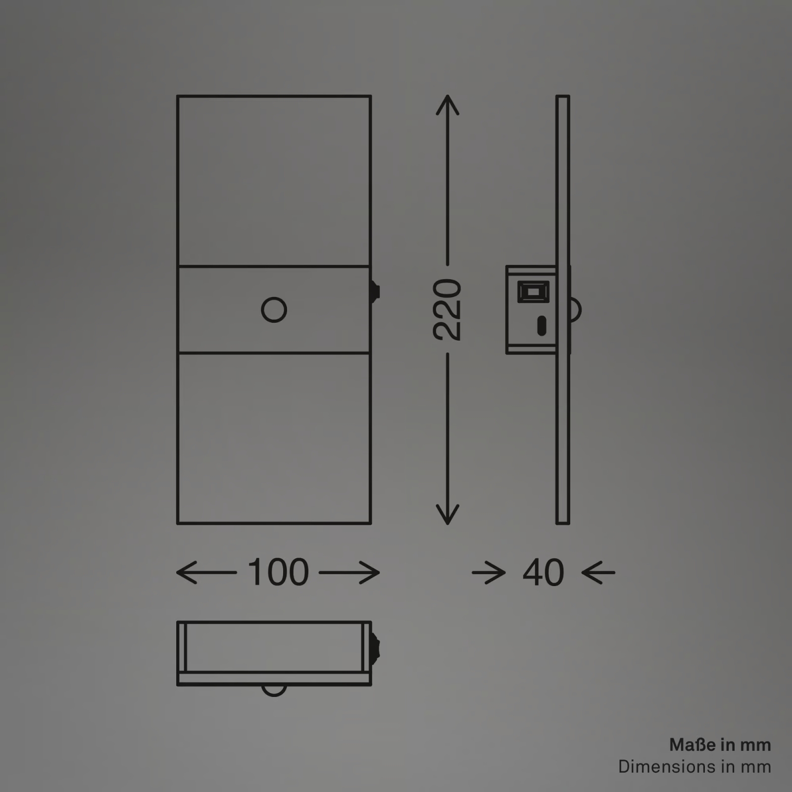• Briloner 3888015 - Oplaadbare LED-muurlamp met bewegings- en schemersensor AURA LED/2,5W/5V 1800 mAh zwart