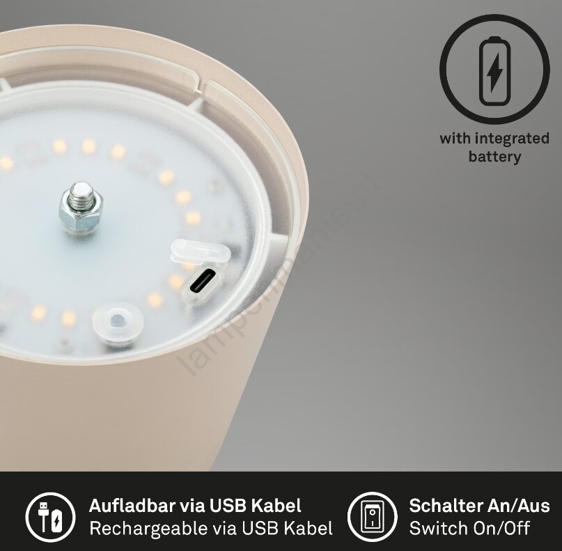 • Briloner 7508011 - Dimbare oplaadbare buitentafellamp 2-in-1 LED/2,5W/5V IP44 1200 mAh beige