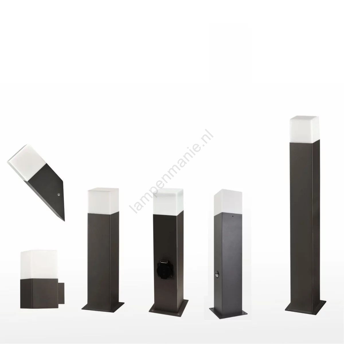 • Buitenwandlamp van roestvrij staal in grafietkleur.