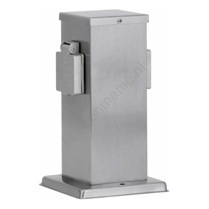 Buitenstopcontact zuil 2Z 230V mat chroom IP44