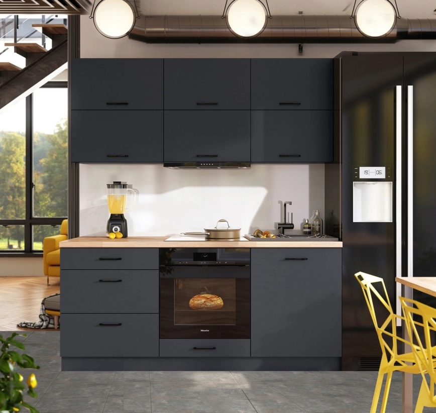 • Praktisch keukenblok biedt u ruime, overzichtelijk ingedeelde opbergruimte en een doorlopend werkblad.