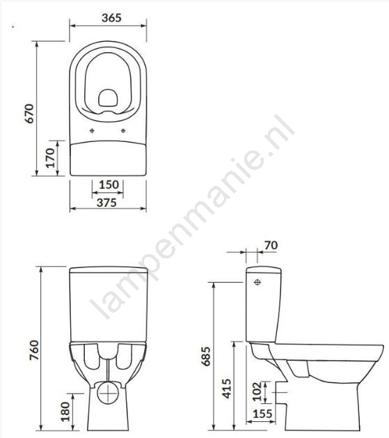• Het toilet heeft een spoelsysteem van 3/5 liter.