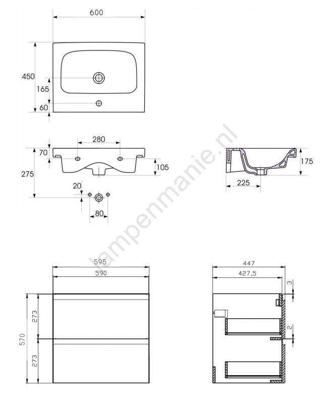 • Deze hangende badkamerkast wordt geleverd inclusief keramische wastafel.