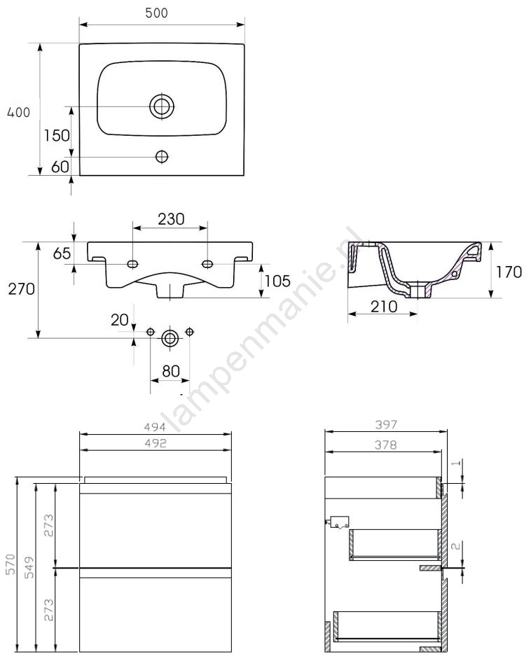 • De keramische wastafel heeft een klassieke rechthoekige vorm met een kraangat en overloop.