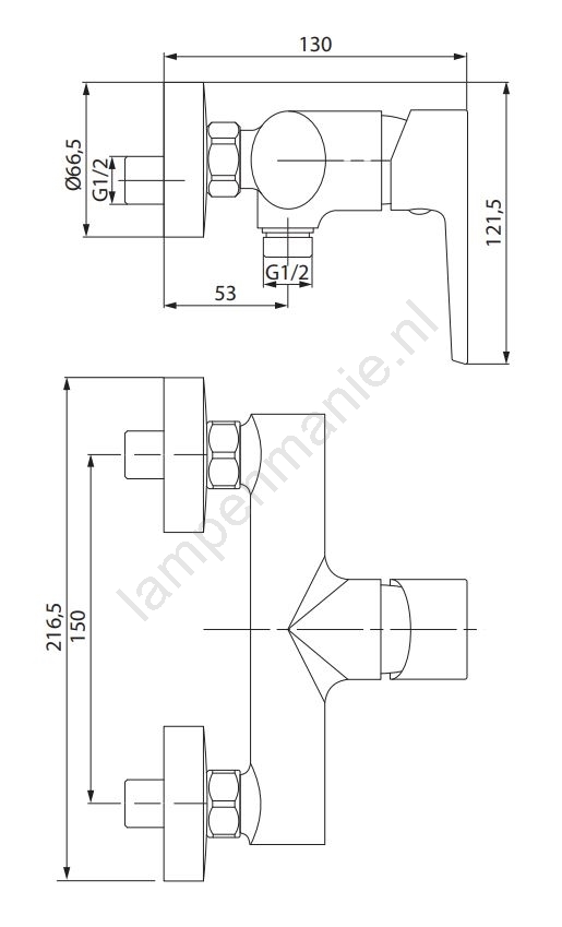 • Bedieningselement: keramische cartridge van 35 mm.