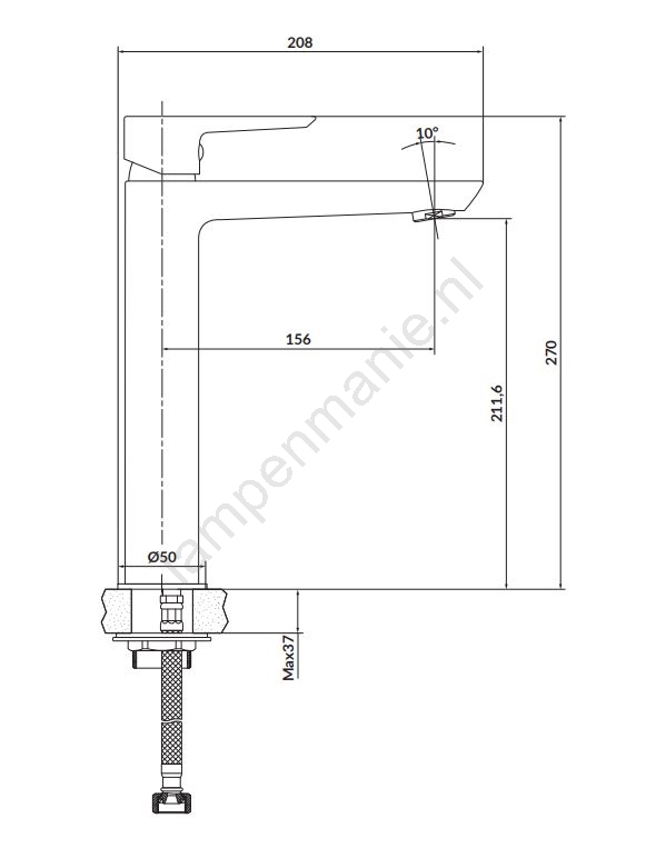 • Metalen klikafvoer met aansluitingsslangen is inbegrepen.