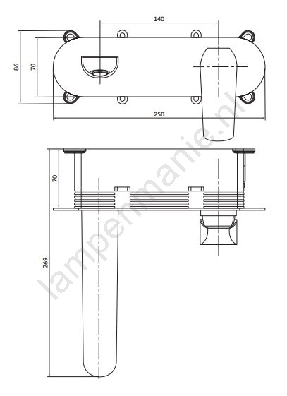 • Wandkraan voor wastafel, geschikt voor inbouwmontage.