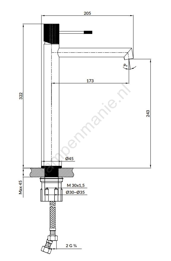 • Aansluitslangen van 60 cm lengte zijn inbegrepen.