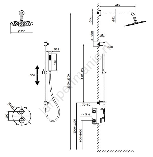 • Deze doucheset met thermostatische inbouwkraan is een stijlvolle aanvulling op elke badkamer.
