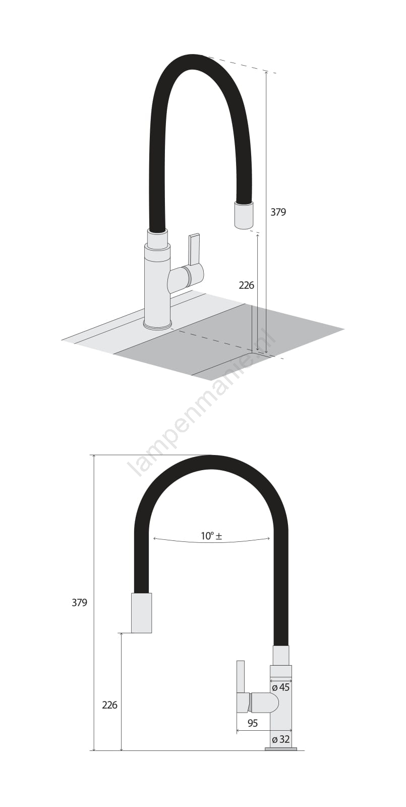 Concept BDC7138 - Keukenkraan met flexibele uitloop, glanzend chroom/zwart