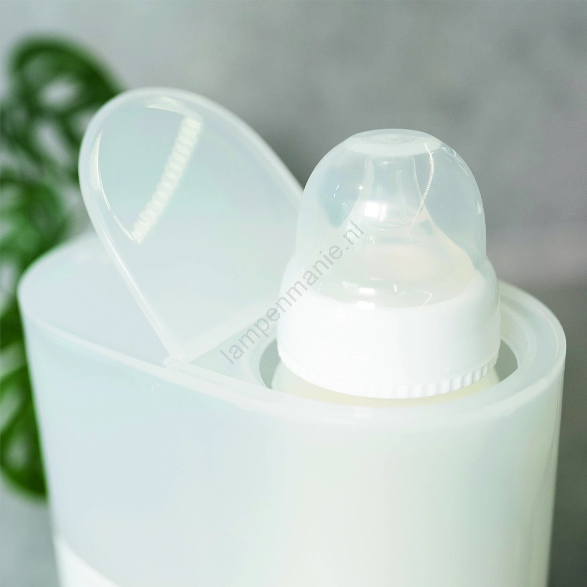 • Er is plaats voor de meeste gangbare flesjes en potjes babyvoeding, een groot voordeel is het opklapbare deksel, zodat u niet beperkt wordt door de hoogte van de fles.